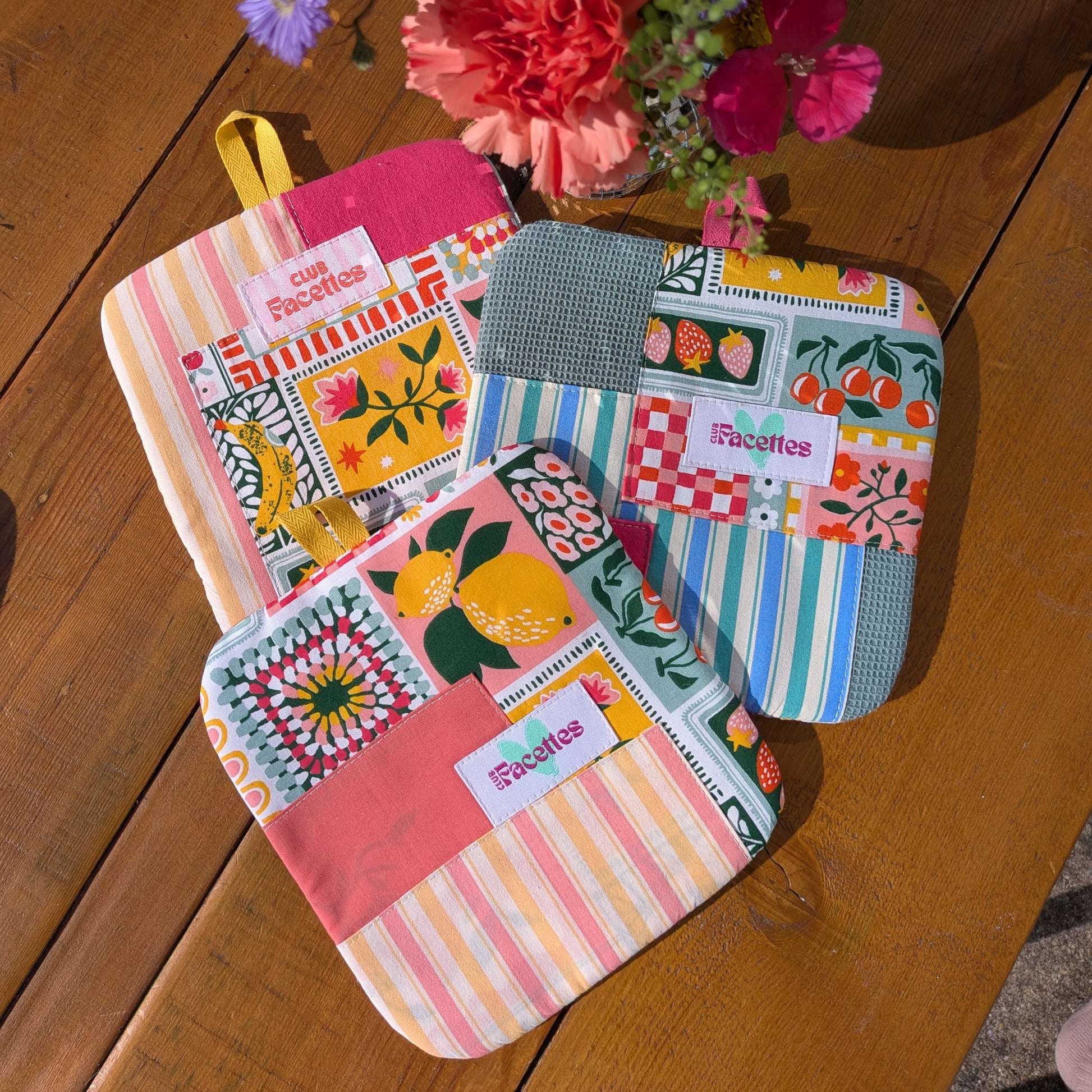 Cette manique est assemblée avec nos chutes de tissus pour un cadeau 100% zéro déchets!